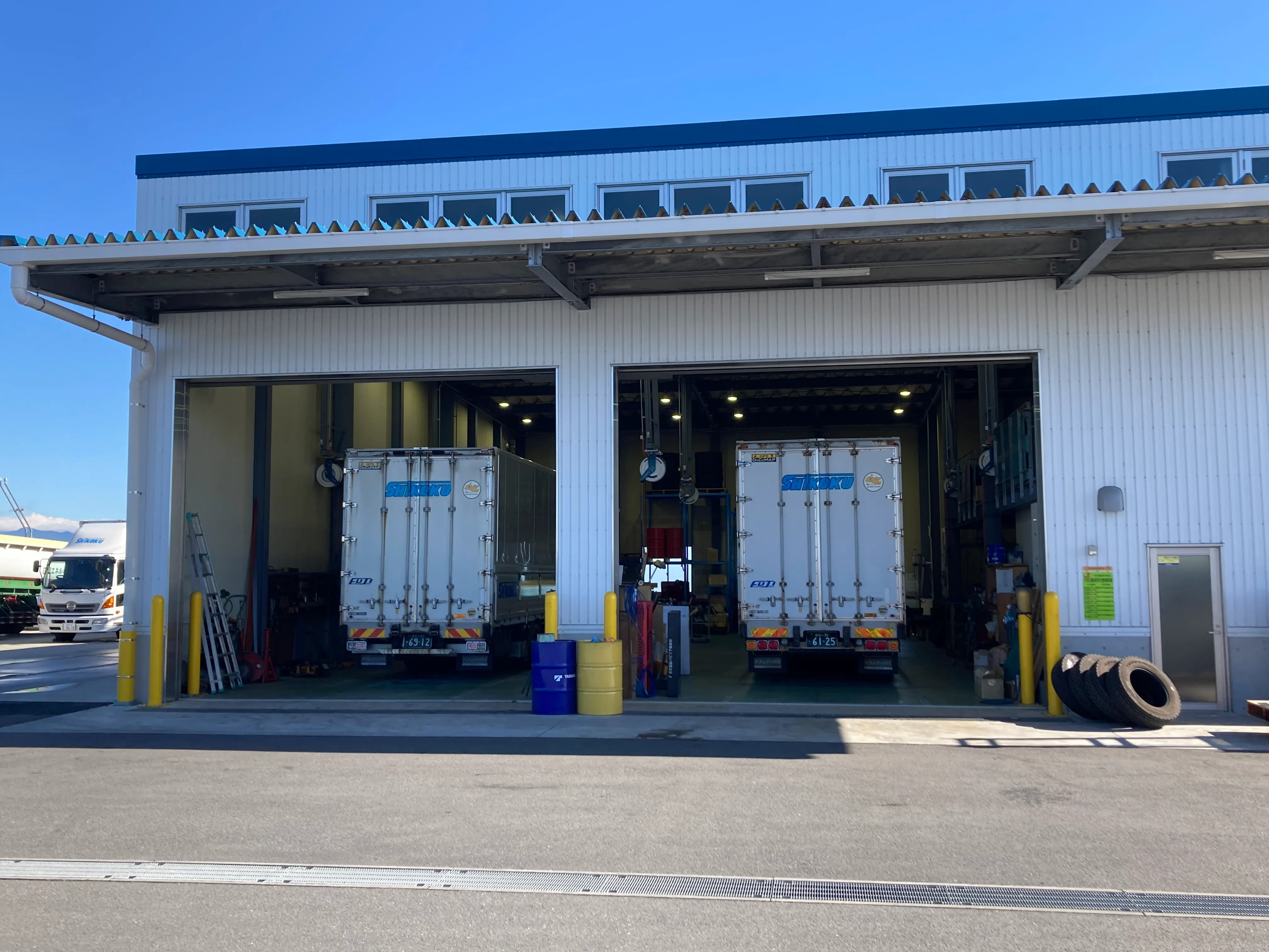 門型洗車機、インタンク、アドブルー、フォークリンフト、コンプレッサーなど、輸送に不可欠な設備を備えています。輸送コストを削減し、より効率的でスピーディな輸送が可能に。非常時の危機管理対策として、ディーゼル発電機を設置。インタンクと合わせて電力の確保をします。