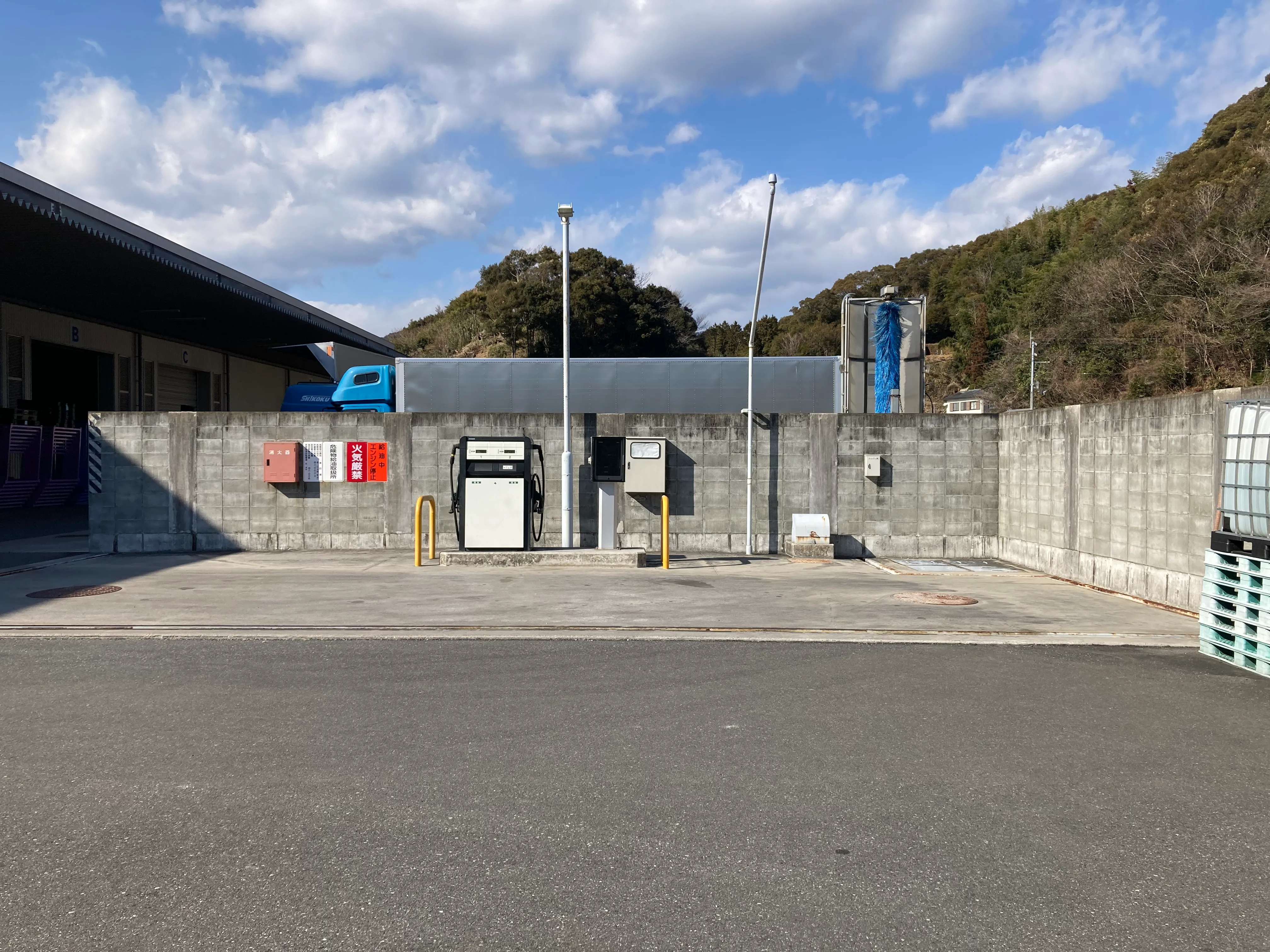 門型洗車機、インタンク、アドブルー、フォークリンフト、コンプレッサーなど、輸送に不可欠な設備を備えています。輸送コストを削減し、より効率的でスピーディな輸送が可能に。非常時の危機管理対策として、ディーゼル発電機を設置。インタンクと合わせて電力の確保をします。